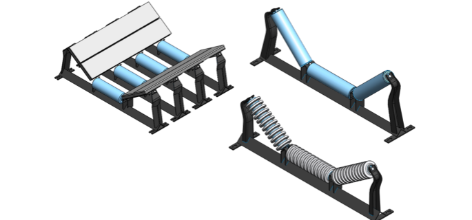 Self-Aligning Troughing IdlersTroughing idlers designed to automatically correct belt misalignment.Automatically correct belt misalignment, reduce wear, improve safety, and lower maintenance costs.Used in situations where belt alignment is critical for operation.Ideal for mining, quarries, and bulk material handling where belt alignment is crucial.