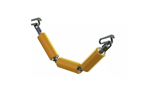 - Garland Arrangement: Carrying garland idlers are composed of several rollers linked together by chains or links, forming a flexible chain-like arrangement. This allows the idlers to adjust to the conveyor’s path more fluidly than fixed idlers.