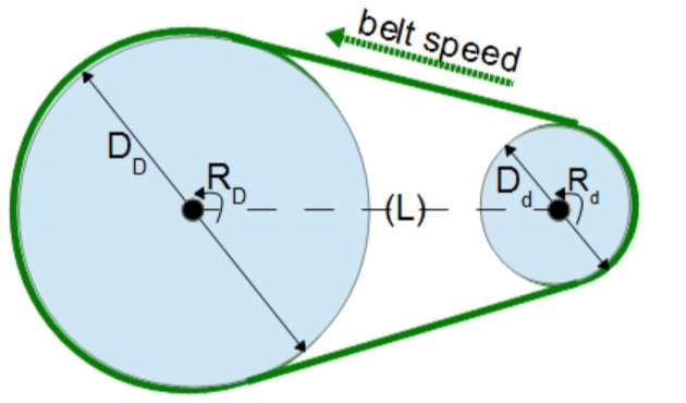 - Diameter of the driven pulley: The diameter of the pulley attached to the conveyor belt.